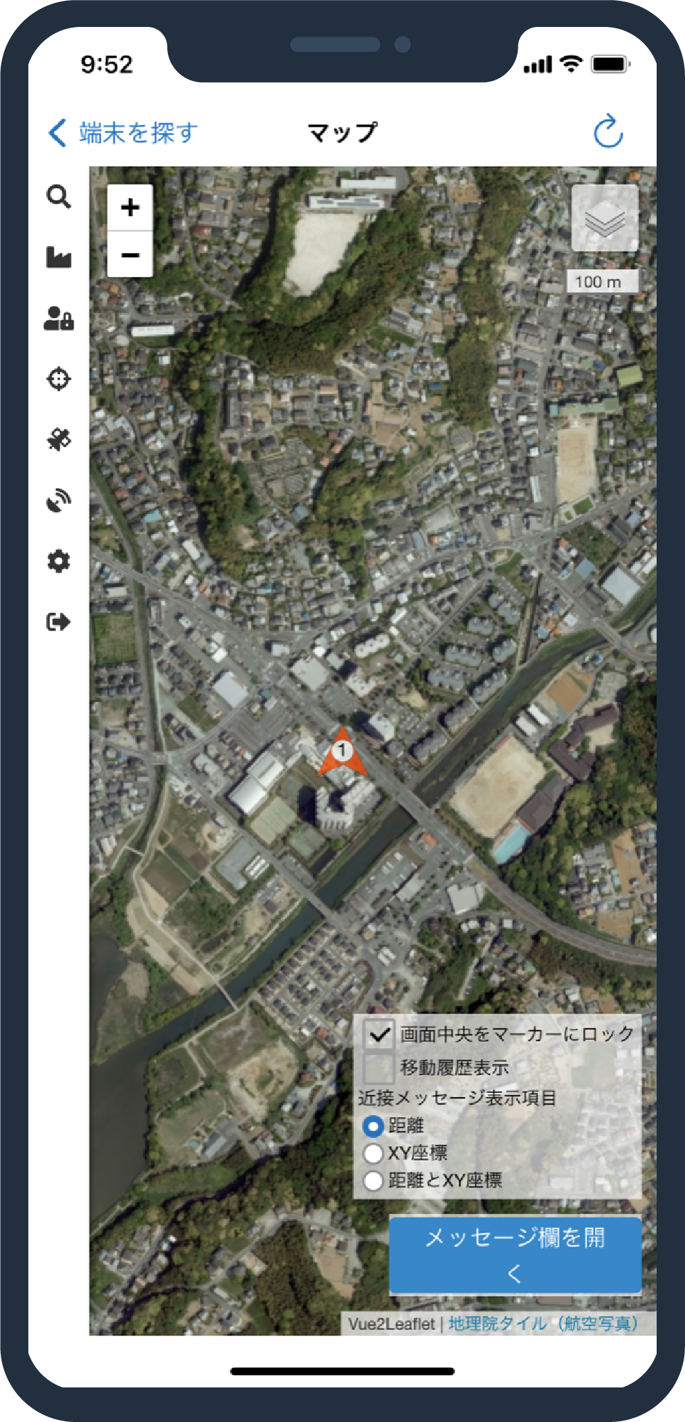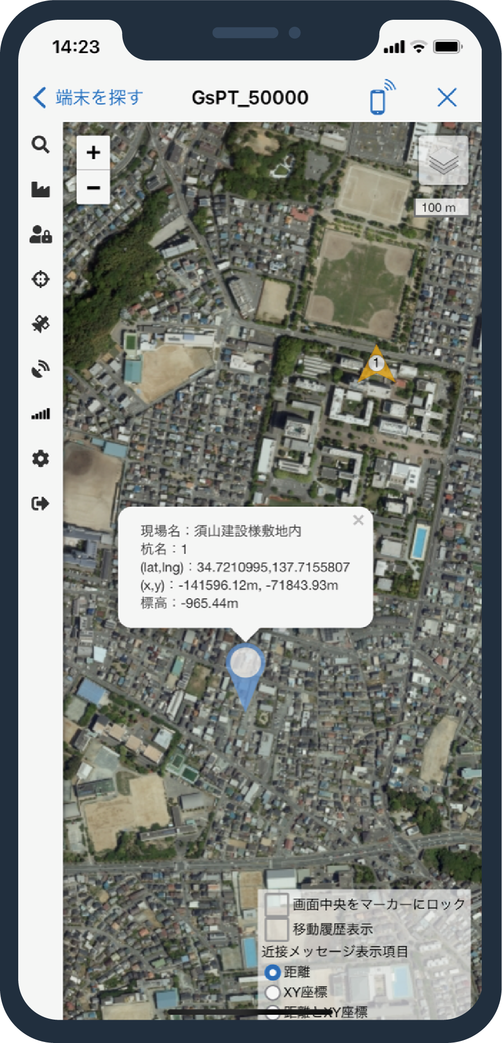 スマートフォンアプリとの即時通信で、一人での測量も簡潔に行えるようになりました。