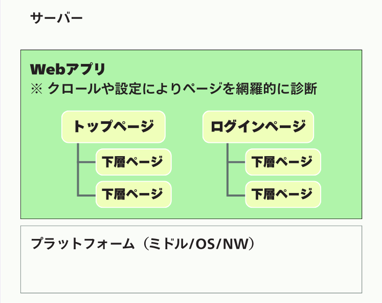 (診断項目例:SQLインジェクション、OSコマンドインジェクション、バッファオーバーフロー、ディレクトリトラバーサル など)